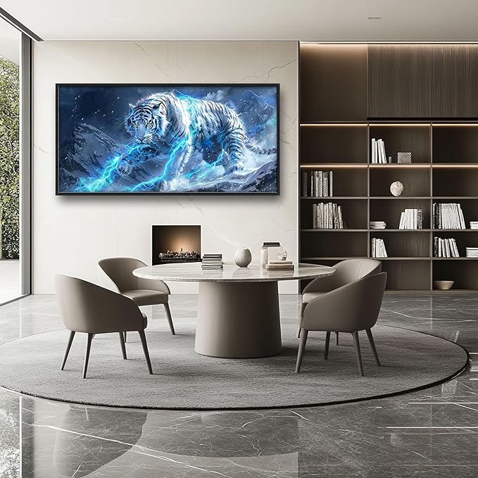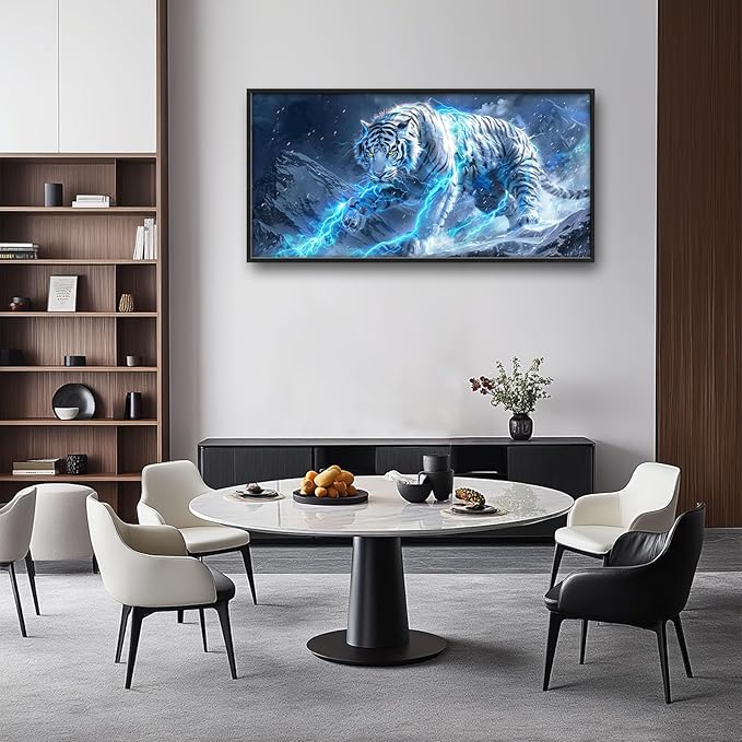 Quorin White Tiger Large Wall Art Wild Animal Pictures Lightning Tiger Wall Decor Snowy Mountain Canvas Print Painting Artwork for Bathroom Living Room Bedroom 60L x 30W