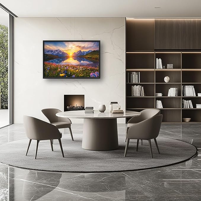 - 【Unique Design】A breathtaking sunrise over the Alps, with vibrant wildflowers blooming in front of crystal-clear waters reflecting mountains and sky. The sun's golden rays gently illuminate snow-capped peaks, creating an enchanting scene that captures nature at its most beautiful.
