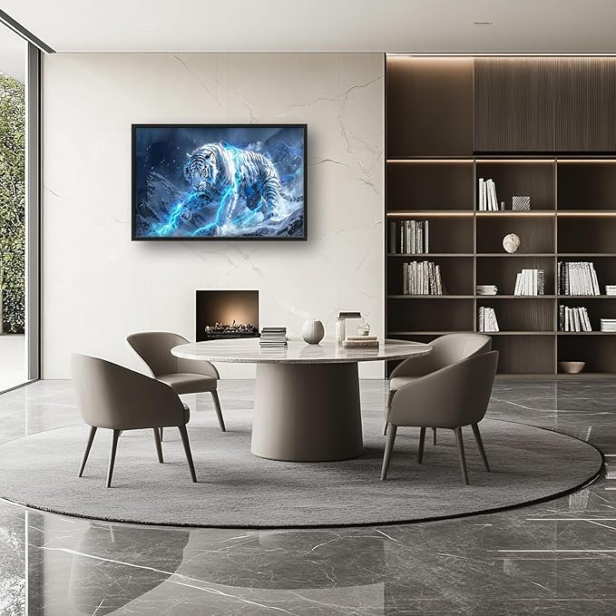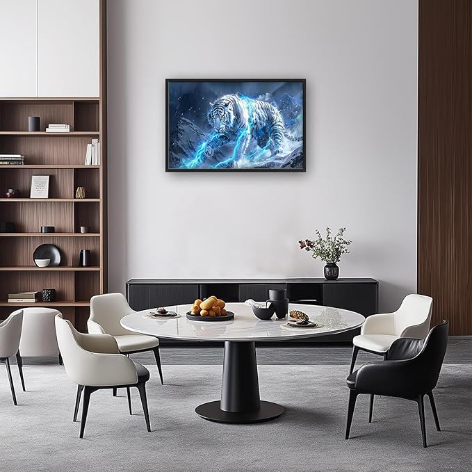 Quorin White Tiger Large Wall Art Wild Animal Pictures Lightning Tiger Wall Decor Snowy Mountain Canvas Print Painting Artwork for Bathroom Living Room Bedroom 36L x 24W
