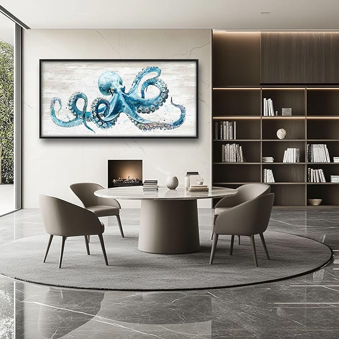 Octopus Large Wall Art Ocean Sea Nautical Pictures Rustic Blue Octopus Animal Wall Decor Canvas Print Painting Artwork for Bathroom Living Room Bedroom 60L" x 30W"