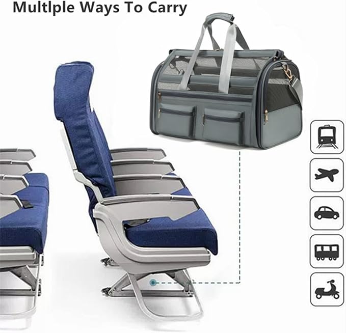 - [AIRLINE APPROVED] This cat carrier is designed with airline approved, it can fit comfortably under most flight seats, we can take our pets wherever we want. Dog travel carrier offers two attachment loop handles that can be used as a dual harness or as a luggage strap for balanced carry and secure transport.