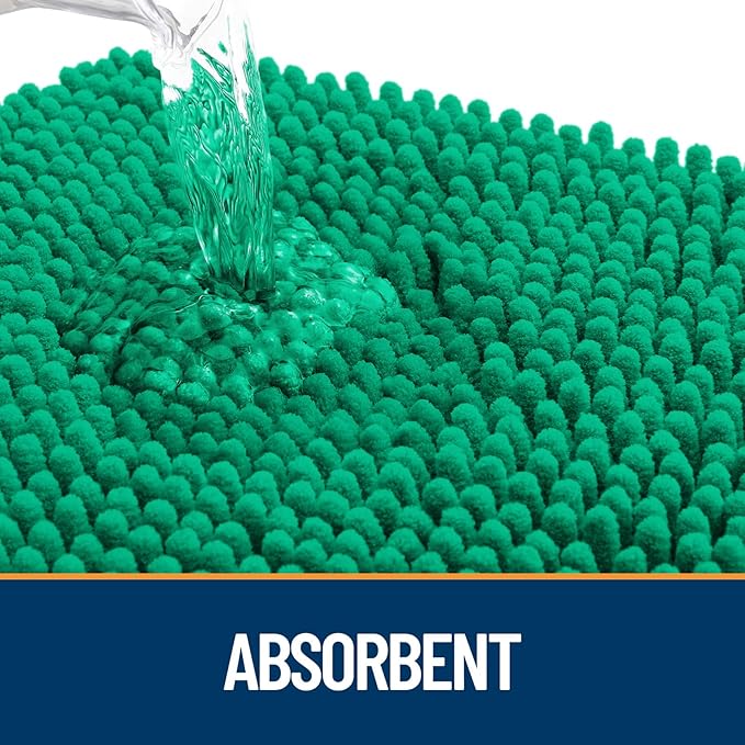 OLANLY Dog Door Mat for Muddy Paws 30x20, Absorbs Moisture and Dirt, Absorbent Non-Slip Washable Doormat, Quick Dry Chenille Mud Mat, Entry Indoor Entryway Carpet for Inside Floor, Emerald Green