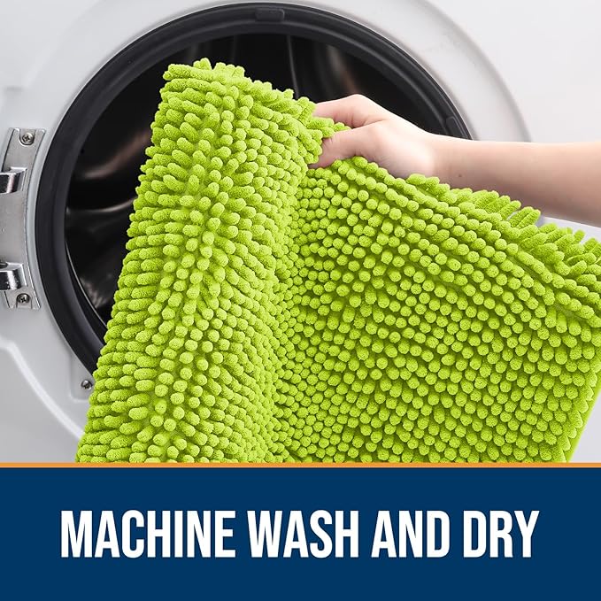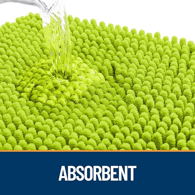 OLANLY Dog Door Mat for Muddy Paws 44x24, Absorbs Moisture and Dirt, Absorbent Non-Slip Washable Doormat, Quick Dry Chenille Mud Mat, Entry Indoor Entryway Carpet for Inside Floor, Bright Green