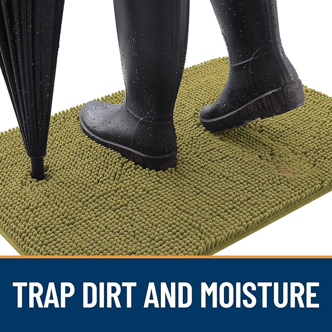 OLANLY Dog Door Mat for Muddy Paws 30x20, Absorbs Moisture and Dirt, Absorbent Non-Slip Washable Doormat, Quick Dry Chenille Mud Mat, Entry Indoor Entryway Carpet for Inside Floor, Willow Green