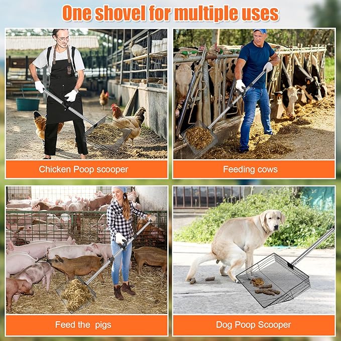 - Multi-Purpose Use: Beyond a Chicken Coop Poop Scooper! Perfect for goat sheds, horse stalls, or even as a poop scooper for dogs/cats/rabbits/deer etc. From backyards to large farms, this all-in-one chicken poop scooper for sand is essential to handle any mess—versatile and built to last