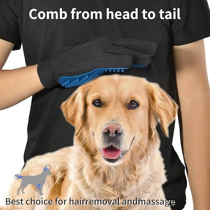 - 2-in-1 Pet Hair Removal Glove: Right-hand bristles gently de-shed fur; left-hand grippy texture lifts hair from couches, clothes, and carpets. No more separate tools!