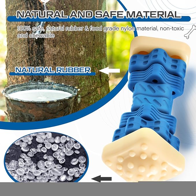 - Safe to Chew: you will receive 2 pieces of dog chew toys made of natural rubber and tough nylon, indestructible and will not be easily destroyed by dogs; They can assist in grinding teeth, easing anxiety, providing training, and minimizing damage to furniture or shoes, as well as reducing pet boredom and barking
