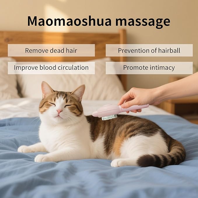 - Durable & High-Quality Material: This cat brush for shedding is crafted from ABS plastic and stainless steel pins, ensuring long-lasting durability. Each massage needle is tipped with soft white silicone for added safety and comfort