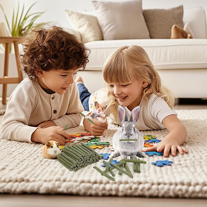 - Teeth Health Molar Care - Rodents' teeth grow continuously, they need chewing to keep their teeth at a proper length. Our timothy hay chew sticks ideal for dental care. These rabbit chew sticks are designed to keep their gnawing habit, reducing the risk of overgrown teeth (Pain, Eating Difficulties, Serious Health Problems). Let your pets enjoy hours of chewing while taking care of their dental health.