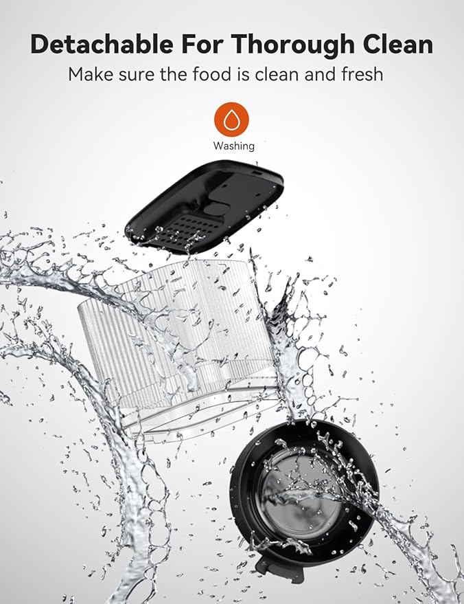 - Reliable Twist-Lock Storage: The automatic cat feeder comes with a unique twist-lock lid, ensuring the perfect amount of dry kibble (sized 0.07-0.47in / 2-12mm in diameter) is securely stored. This design preserves the crunchiness and flavor of the food while keeping it safe from curious paws.