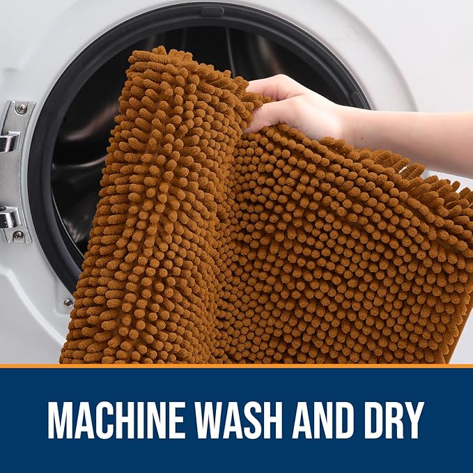 - [LOW PROFILE AND EASY CARE] OLANLY's Chenille Dog Door Mat boasts a slim 1-inch profile, offering a sleek and streamlined appearance. The thoughtful design ensures your doors won't get stuck, and the mat stays securely in place. Cleaning is a breeze – simply shake off any dirt or debris, or toss it in the washing machine for a deeper clean. It dries quickly, so you can be sure it's ready to use again in no time.