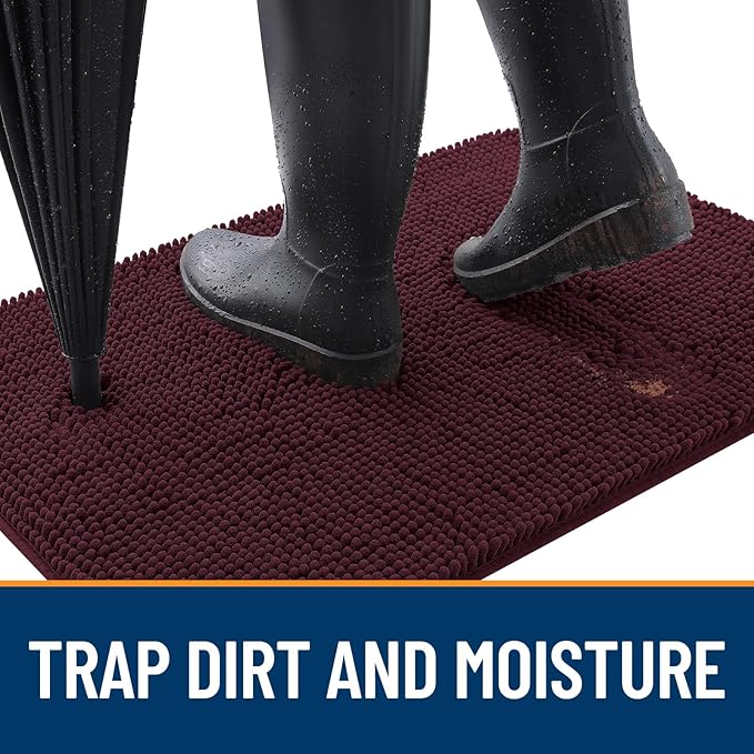 - [LOW PROFILE AND EASY CARE] OLANLY's Chenille Dog Door Mat boasts a slim 1-inch profile, offering a sleek and streamlined appearance. The thoughtful design ensures your doors won't get stuck, and the mat stays securely in place. Cleaning is a breeze – simply shake off any dirt or debris, or toss it in the washing machine for a deeper clean. It dries quickly, so you can be sure it's ready to use again in no time.