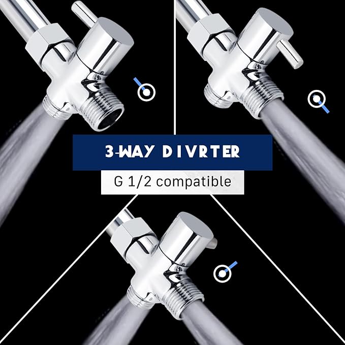 - Easy installation, no plumber required: The shower head kit uses a universal G1/2" interface, suitable for most bathroom shower systems, and the self-adhesive bracket can be used on clean and smooth wall surfaces. Simply follow the installation diagram on the detail page to install