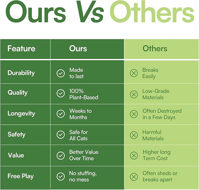 - 🌿 100% Natural Ingredients - Made entirely from plant-based ingredients you can trust: Catnip (Nepeta cataria), Catmint (Nepeta racemosa), and Polygonum officinale, a chew-safe wood from the kiwifruit family. No chemicals, no preservatives-just pure botanical joy for your cat.