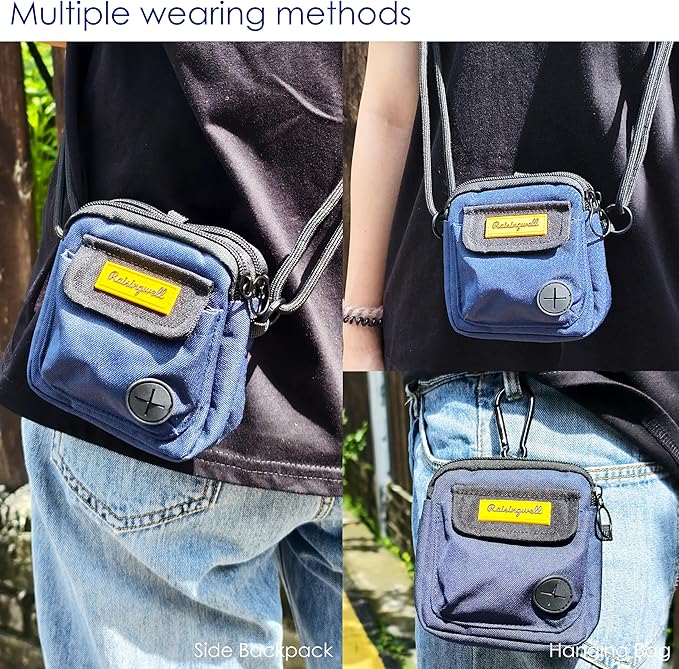 - 1.Fashion Design: This dog training treat bag measures 4.9 x 5.1 inches and features a three bag design, offering versatile wearing options. It comes equipped with a carabiner and a strap, allowing you to hang it on your leash, attach it to your pet's collar, or even wear it as a trendy accessory on your bag. The bag features a zipper closure, ensuring that treats stay secure inside even when you're playing with your pet afterward. It's perfect for carrying around or using during short outings.