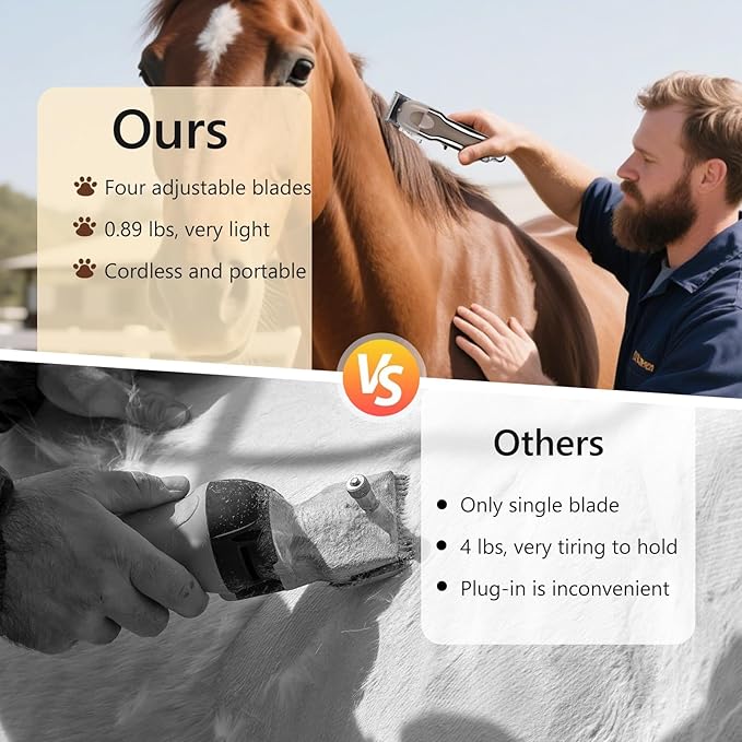 - 【Designed for Horses】This horse clipper allows for the quick and efficient removal of thick horse hair. It makes grooming easy and saves you time, especially beneficial for novice users.