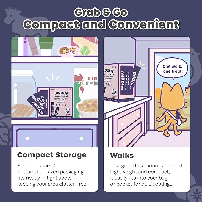 - COMPACT DISPENSER PACK: This Brain Support pack includes 49 sticks to treat your cat or dog. Itโs perfect for quick, grab-and-go use, easy to carry in a bag for trips, or convenient to keep near your pet supplies.