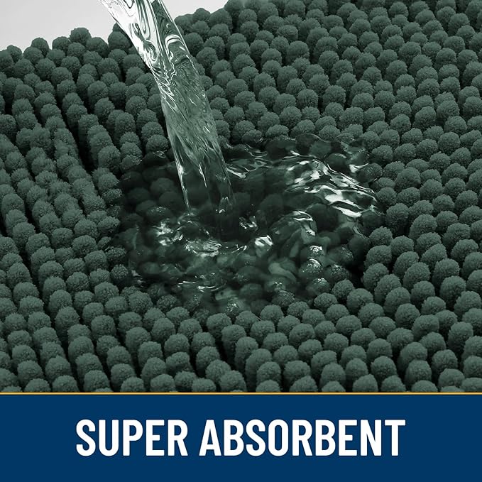 Smiry Dog Door Mat for Muddy Paws 30x20, Absorbs Moisture and Dirt Doormat, Non-Slip Washable Quick Dry Chenille Front Door Mat Indoor Entrance, Entryway Carpet for Inside Floor, Green