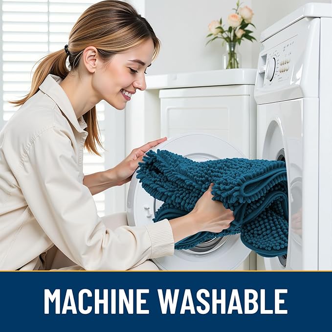 Smiry Dog Door Mat for Muddy Paws 48x30, Absorbs Moisture and Dirt Doormat, Non-Slip Washable Quick Dry Chenille Front Door Mat Indoor Entrance, Entryway Carpet for Inside Floor, Atlantic Blue