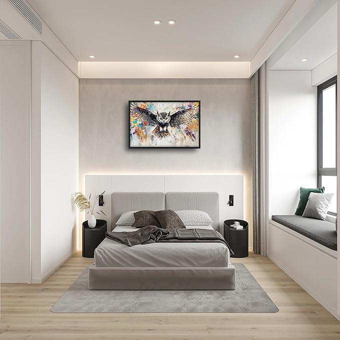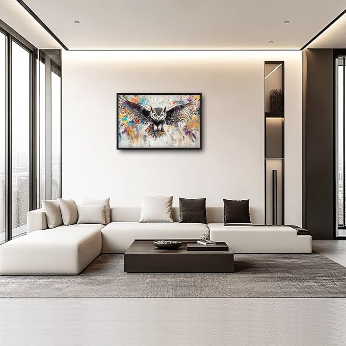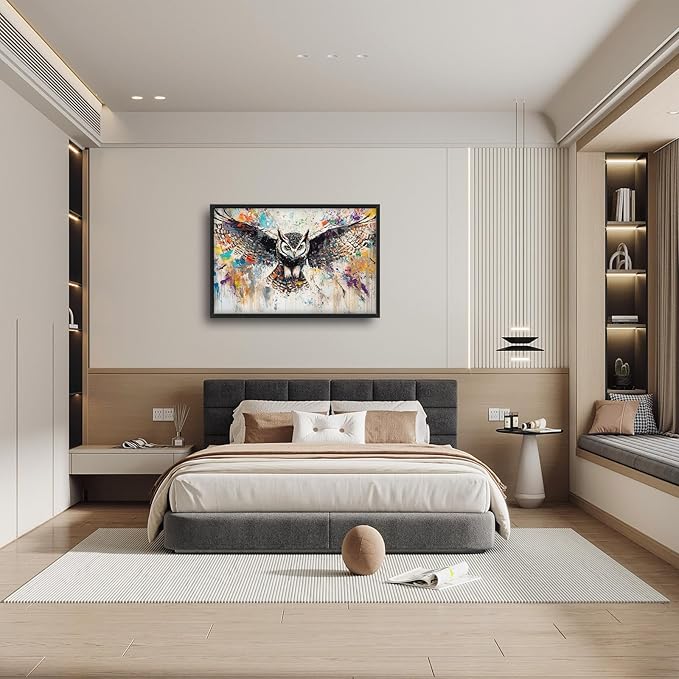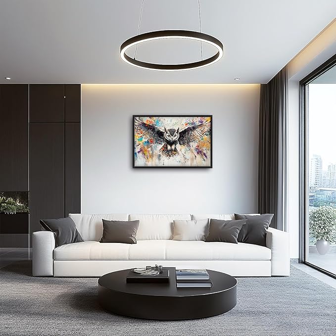 Large Owl Wall Art for Living Room, Framed Oversized Banksy Owl Wall Decor Colorful Wildlife Canvas Painting Animal Pictures Modern Artwork for Living Room Bathroom Bedroom Office Dining Room 36"x24"