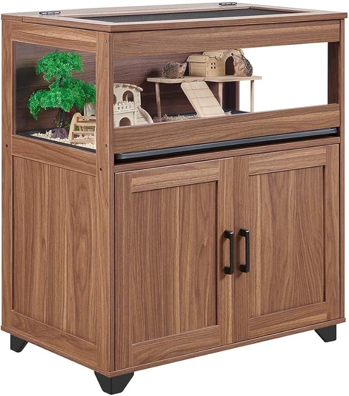 unipaws Hedgehog Cage with Storage Cabinet, Hamster Cage for Rat and Guinea Pigs, Clear Transparent PVC Visual Small Animal Cage with Tray, Hamster Enclosure, Walnut