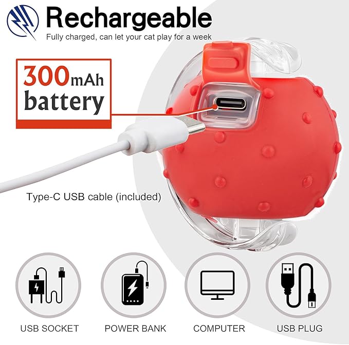 - Bird Chirping & Interesting Tail for Hunting - This automatic cat ball has realistic bird sounds, which can attract cats to be interested in this bird chirping cat toy and trigger their hunting instincts. The elastic tail accessory moves rapidly along with the ball, making your cat think it is an agile mouse and go crazy for it. Perfect hunting toy for cat. In the package, we have included two different tail accessories for your convenience of replacement.