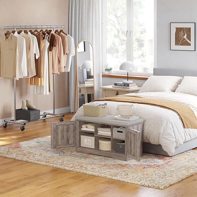 - 【Effortless Push-to-open Door 】Feature a fully enclosed design with a push-to-open mechanism, keeping shoes clean and tidy while avoiding accidental bumps against door handles during use. Reasonable height and soft cushion let you change shoes by sitting on the bench more comfortable without bending down or squatting