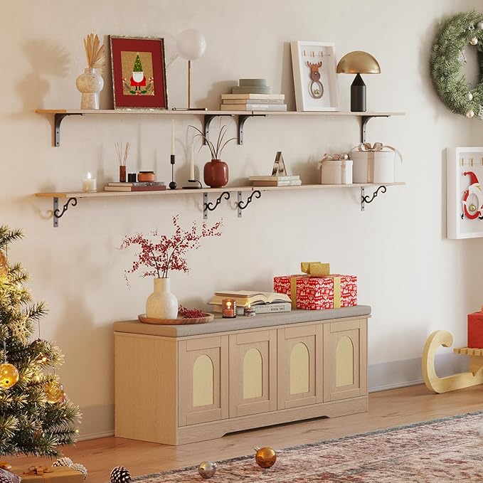 - 【Effortless Push-to-open Door】Feature a fully enclosed design with a press-to-open mechanism, keeping shoes clean and tidy while avoiding accidental bumps against door handles during use. Reasonable height and soft cushion let you change shoes by sitting on the bench more comfortable without bending down or squatting