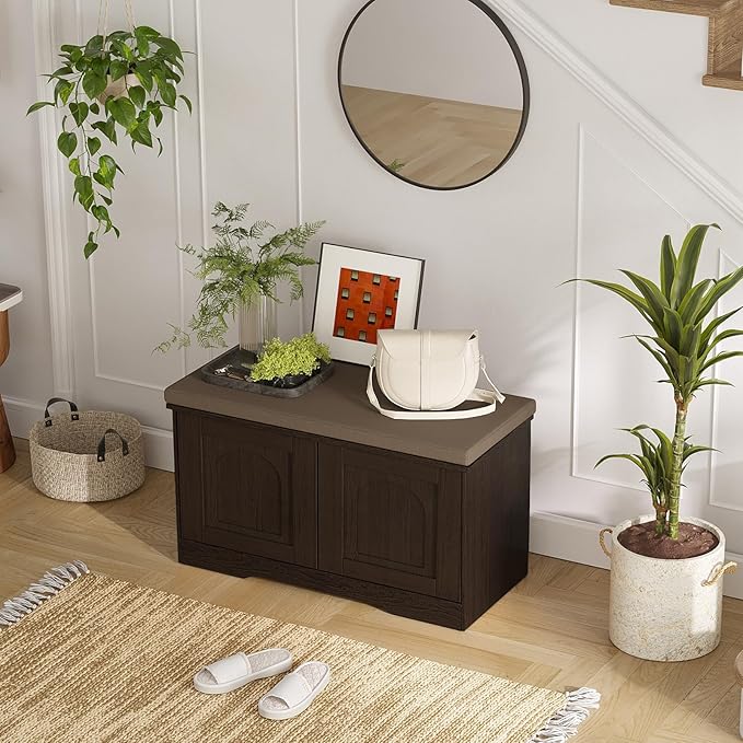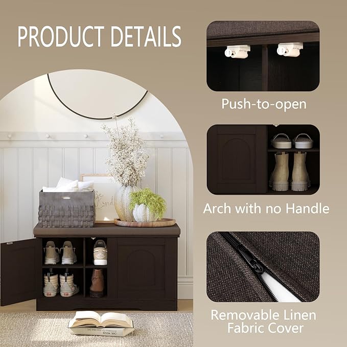 - 【Effortless Push-to-open Door 】Feature a fully enclosed design with a push-to-open mechanism, keeping shoes clean and tidy while avoiding accidental bumps against door handles during use. Reasonable height and soft cushion let you change shoes by sitting on the bench more comfortable without bending down or squatting