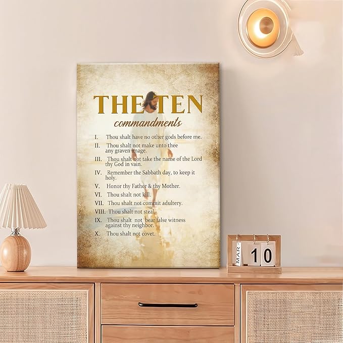 The Ten Commandments Christian Pictures Wall Art, Bible Verse Jesus Bathroom Wall Decor Religion Scripture Framed Painting Religious Canvas Artwork for Church Bedroom Living Room 24"L x 16"W