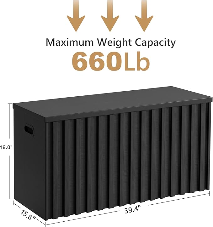 UEV Storage Bench,39.4" Wood Box, Storage Trunk with 2 Safety Hinges, Ottoman Storage Chest, Fluted Storage Bench for Bedroom, Entryway, Living Room(Black)