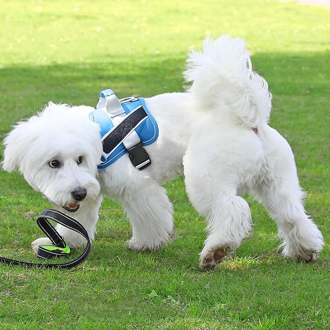- STURDY HANDLE: The adjustable dog harness with rugged nylon handle further enhances your distance from the dog and is more intimate with each other. Easy on dog harness is also the best partner for dogs and is easy to control your dog.
