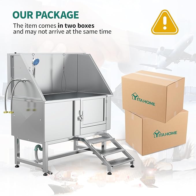 - Flexible Usage: Shipped in two packages that may arrive at different times, this spacious pet washing station is suitable for indoor or outdoor grooming, offering convenience for both personal and commercial pet care
