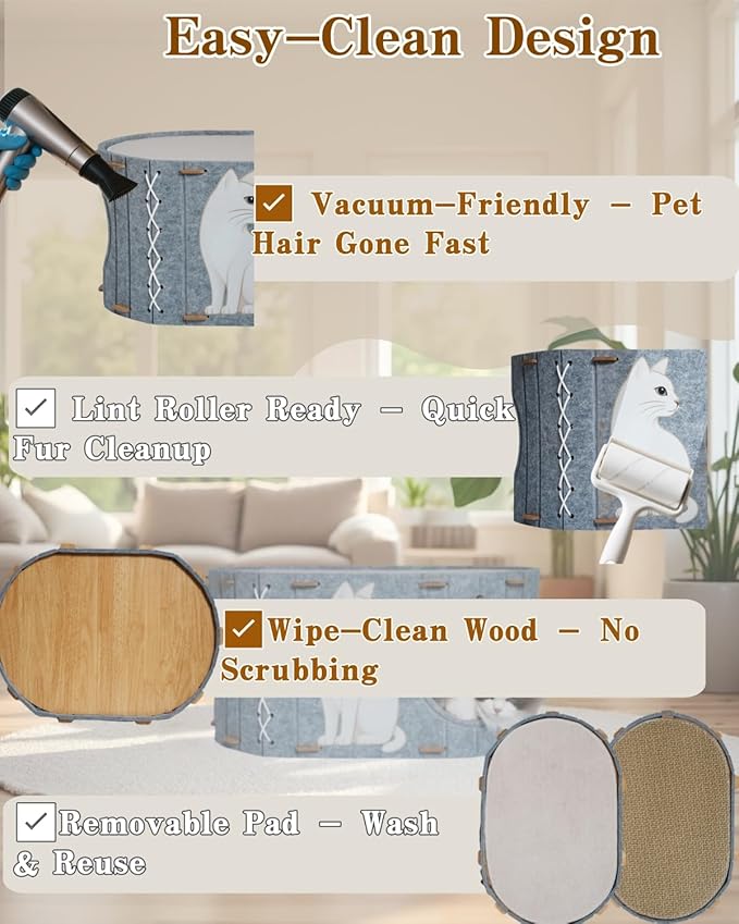 - COZY PLUSH CUSHION FOR YEAR-ROUND COMFORT:Includes a soft, removable cushion that stays warm in winter and breathable in summer. Whether it’s a sunny nap or a chilly night, your cat will love curling up in this modern kitty cave.