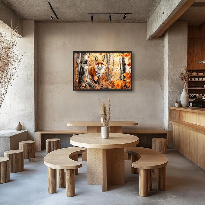 Large Fox Wall Art for Living Room, Framed Oversized Fall Autumn Forest Wall Decor Tree Maple Leaves Canvas Painting Modern Artwork for Living Room Bathroom Bedroom Office Dining Room 36"x24"