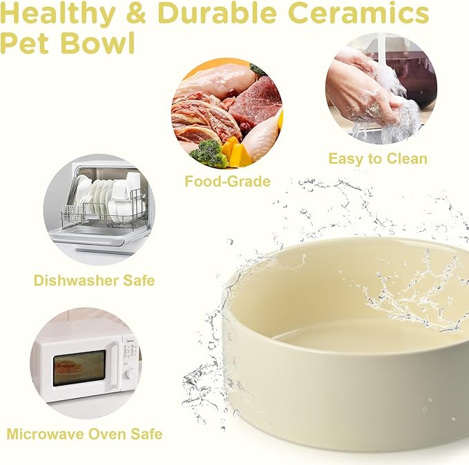 - Lead-Free Ceramic Pet Bowls - 8.3" Ceramic Dog Bowls with 60 OZ Capacity Fired at high temperature with a foodโgrade glaze that contains zero lead or cadmium, these nonโporous bowls help keep meals tasting fresh, rinse clean in seconds, and both MICROWAVE SAFE and DISHWASHER SAFE