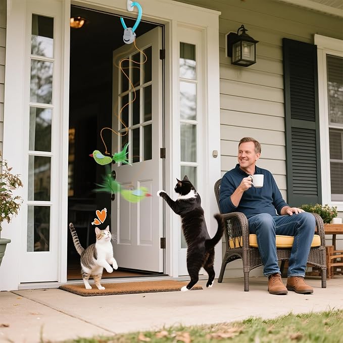 - Cat Doorway Toy Complete Set – Ready to Play Right Out of the Box Includes: ✅ 2x Flying bird Toy for Cats(attracts cats with realistic motion) ✅2x Mouse cat toy✅2x Tail cat toy✅ 2x Elastic Strings (adjustable length for different play styles) ✅ 1x USB Charging Cable (convenient rechargeable) ✅ 1x Color Box + User Manual (easy setup)Enrichment for indoor cats perfect for keeping cats entertained.