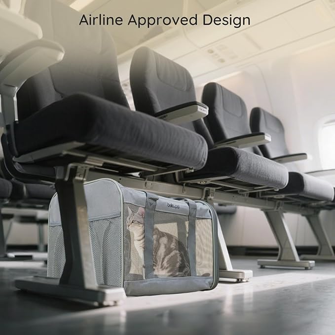 BELLA & PAL Cat Carrier Travel Bag, Airline Approved Lightweight Cat Carrier, Soft Sided Pet Carrier for Puppy Dogs Up to 18lbs, Collapsible Kitten Bag with Removable Waterproof Mat, Ventilated Mesh