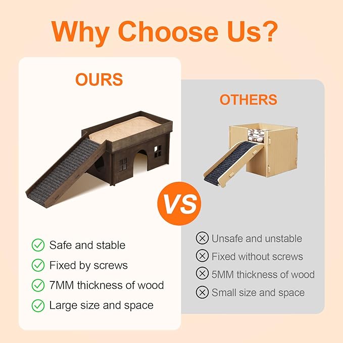 - 🐰【Hut Habitats with Stairs】Our upgraded guinea pig hideout with a ladder, the roof can be used as a platform to play. The hamster can go down to the room to rest when he is tired.Let your little hamster no longer feel boring and reduce their negative emotions.