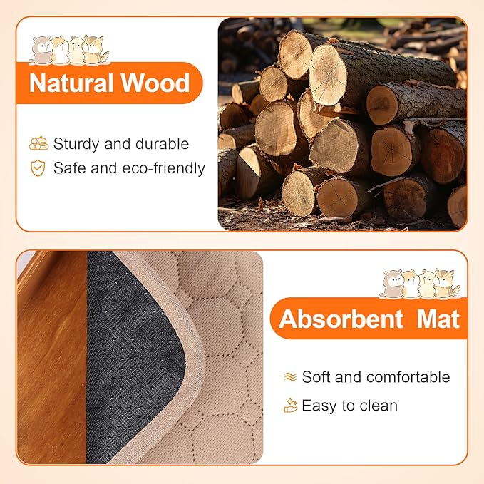 - 🏆【Absorbent Fleece Liners】This large guinea pig hideout is also equipped with a super-absorbent urine pad which protects the cage or floor from animal urine and droppings. The urine pad can be used repeatedly and is made using a comfortable and soft fabric.