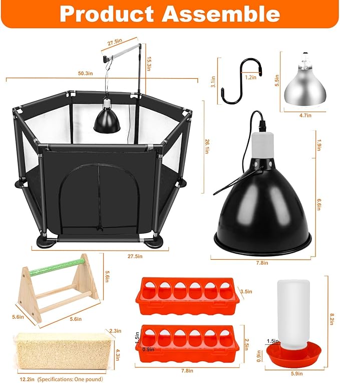 - Quick Setup & Versatile Habitat: Featuring a lightweight, tool-free assembly design with lamp hanger, this portable enclosure sets up effortlessly indoors. Perfect for raising chicks, ducklings, and quail with adaptable space requirements.