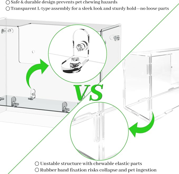 - Durable Acrylic Construction: Crafted from durable acrylic material, this hay feeder is built to last, outperforming traditional wood or plastic hay racks. Its L-shaped fixing assembly securely fasten each acrylic panel, creating a sturdier and more reliable construction than other acrylic hay holders