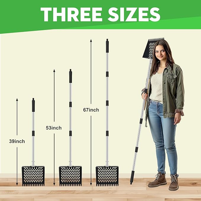 2-in-1 Chicken Poop Scooper & Rake - Adjustable Chicken Coop Scoop with Handle(39、53、67 in),Stainless Steel Shovel Head- Litter Scooper Sand & Sifting Shovel for Chicken Coops