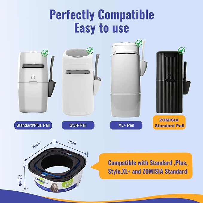 - Perfect Compatibility: Specially designed for Litter Genie systems, including Standard, Plus, Style and XL+ models. Also compatible with our Zomisia standard bins. Each 30ft refill lasts longer than any other โ 4 Genie refill cartridges provide up to 72 weeks (Almost 17 months) for one cat