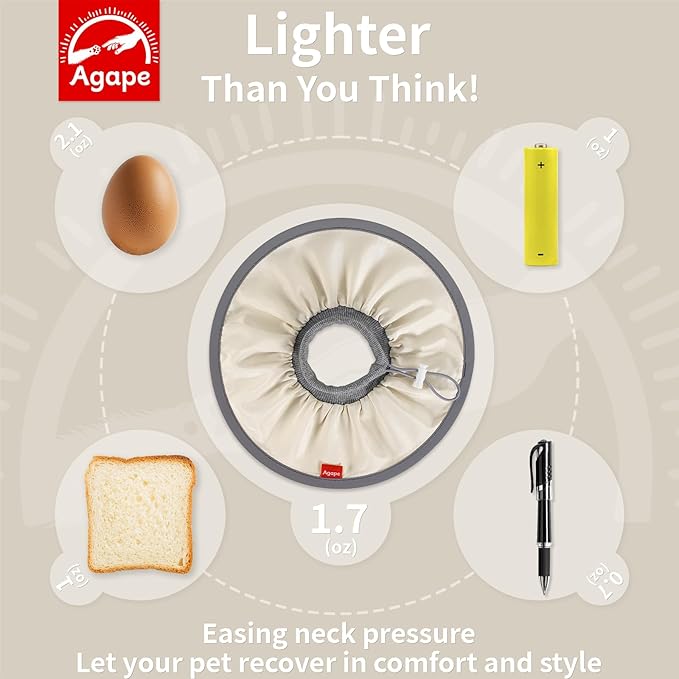 - 【Soft & Lightweight】Unlike bulky, uncomfortable cones on the market, Agape's cat cone is made with two layers of silky fabric and a ribbed knit collar, weighing just 1.7 ounces—about the same as two single AA battery. This ultra-light, breathable, and soft design ensures your cat can sleep peacefully and comfortably, without feeling any strain or restriction around their neck