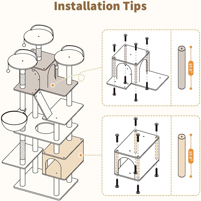 - PRIVATE CONDOS & COZY HAMMOCK: Two enclosed condos and a soft, adjustable hammock give your cats comfortable places to rest or hide. A perfect setup for multi-cat homes or indoor cats who enjoy their own space.