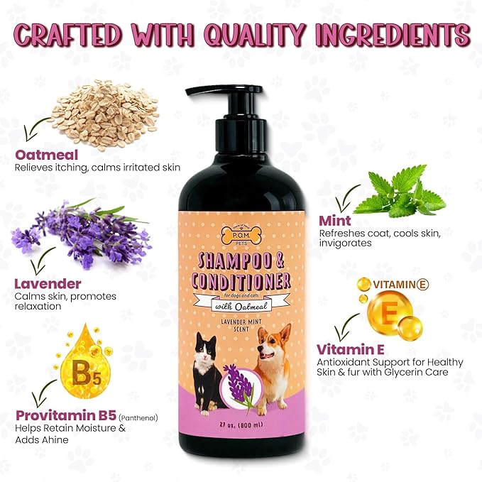 - "EASY 2-IN-1 GROOMING FOR DOGS & CATS: Simplify bath time with this convenient dog shampoo, combining cleaning and conditioning in one effective step. Perfect for busy pet parents, It works as both dog shampoo and conditioner as well as organic cat shampoo and conditioner, making it great for both dogs and cats care."