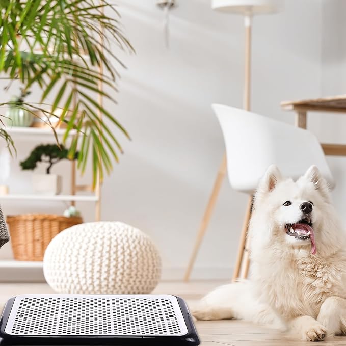 - Proper Size: the dog toilet measures about 19.7 x 14.2 x 1.2 inches, with enough room for your lovely pet to move around freely and enjoy peeing time; In addition, the raised grid design allows more litter and droppings to stay inside to avoid spills, so that you have no need to do extra cleanup, saving time and effort