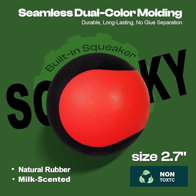 - Dental Care & Anxiety Relief & Perfect Grip – Textured rubber surface helps clean teeth, massage gums, and freshen breath while dogs chew, providing mental stimulation and helping with anxiety relief.The high-contrast dual-color design makes it easy to spot in grass, water, or dirt. Its textured surface offers superior grip, allowing dogs to catch and retrieve the ball without slipping.