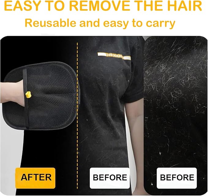 - Pet Hair Remover Glove - Experience our innovative double-sided pet grooming gloves, features grooming surfaces on both sides to improve cleaning efficiency and effectively remove loose hair. You only need to rub back and forth, and the hair will automatically collect.